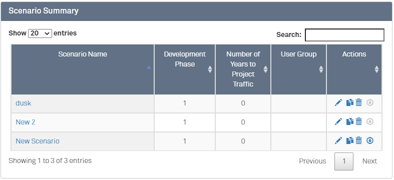 My Projects is a place to keep track of all the sections within your project. A project is made up of one or more scenarios; these scenarios will often represent a set of conditions for the development project you’re working on.