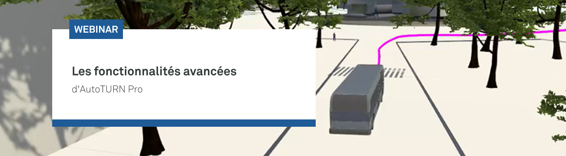 Découvrez la solution d’analyse d’épures de giration la plus avancée 3D. Notre webinaire « Les fonctionnalités avancées d’AutoTURN Pro » s’adresse aux utilisateurs expérimentés autant qu’à ceux qui désirent découvrir les fonctionnalités du logiciel.